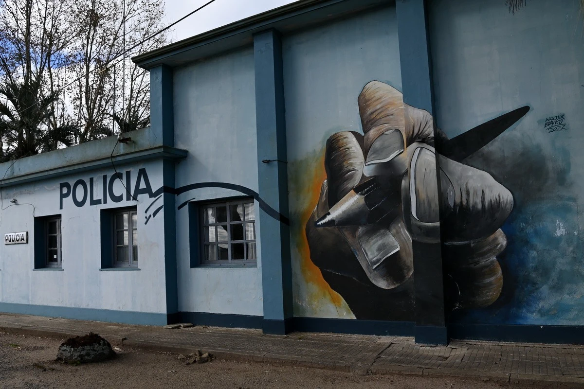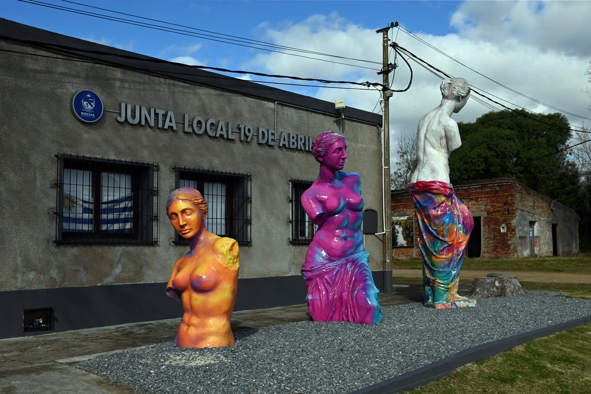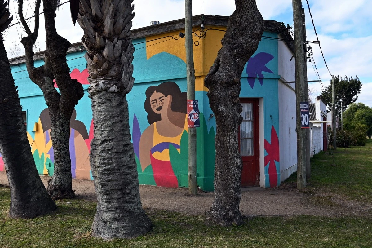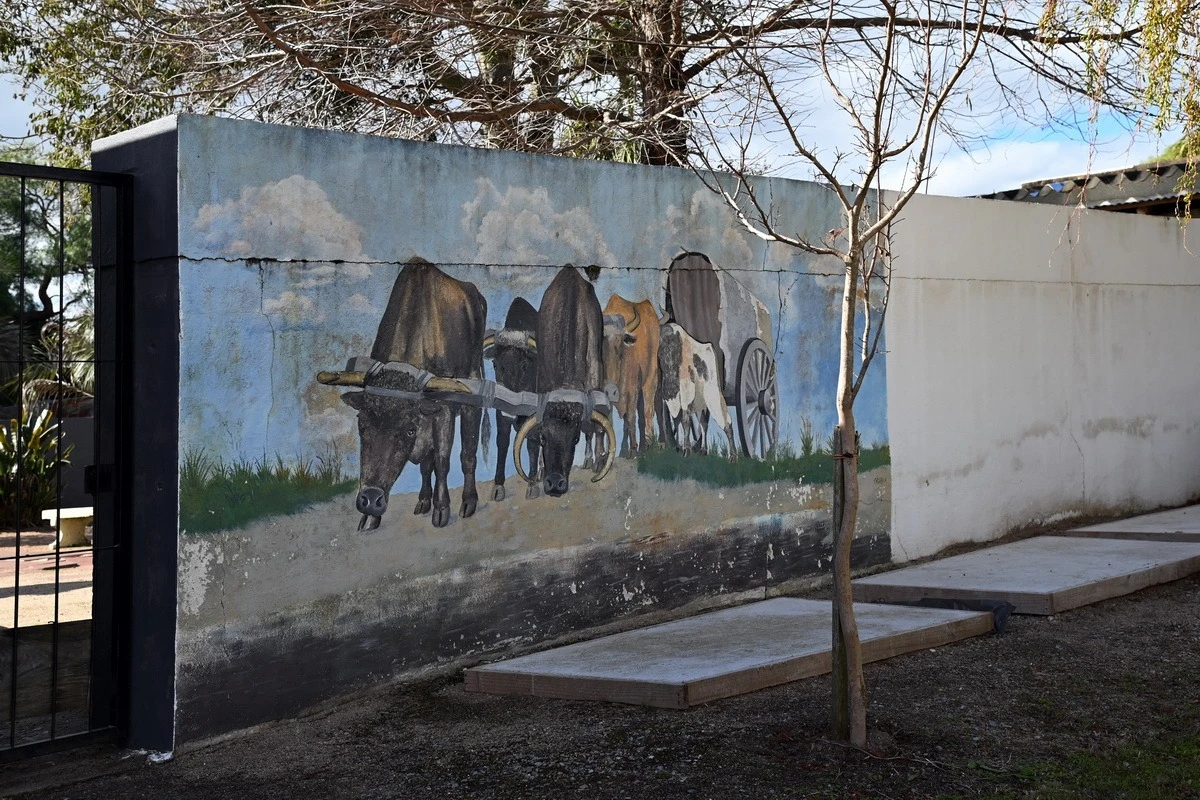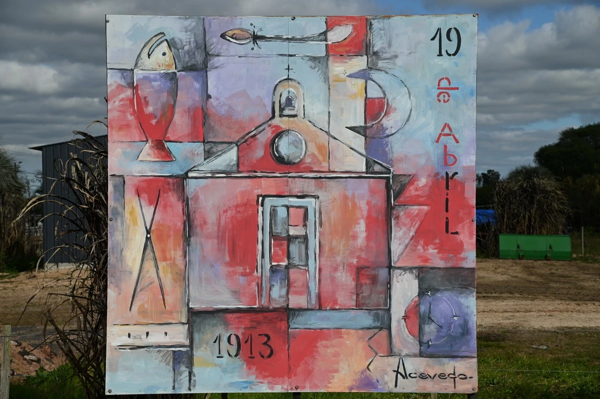 Pueblo 19 de Abril, Uruguay, befindet sich im Departement Rocha. Für uns ein interessanter Ort mit viel ausgestellter Kunst und speziellen, alten Gebäuden. Die paar hundert Einwohner unterhalten ihre Gebäude und pflegen die vielen öffentlich ausgestellten Gemälde. Gute Foto Sujets für uns.