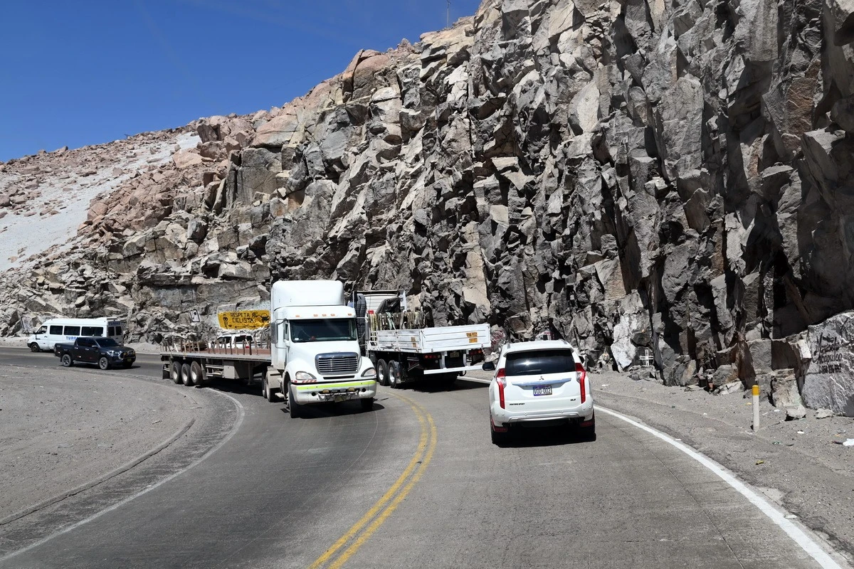 Ein zu großer Anteil der Fahrzeuge sind leider nur beschränkt verkehrstauglich, und dazu meistens noch überladen. Tanklastwagen und schwer beladene Minenfahrzeuge sind bergauf logischerweise oft sehr langsam unterwegs. Dies führt zu langen Konvois. Das hindert leider einige kopflose Autofahrer nicht, an unübersichtlichen, sehr gefährlichen Stellen zu überholen. Nach einer Viertelstunde sind diese dann in derselben Kolonne um ein paar Plätze vorgerückt. Wie man aber an den vielen zertrümmerten Autowracks und Unfallkreuzen sieht, schaffen es nicht Alle.