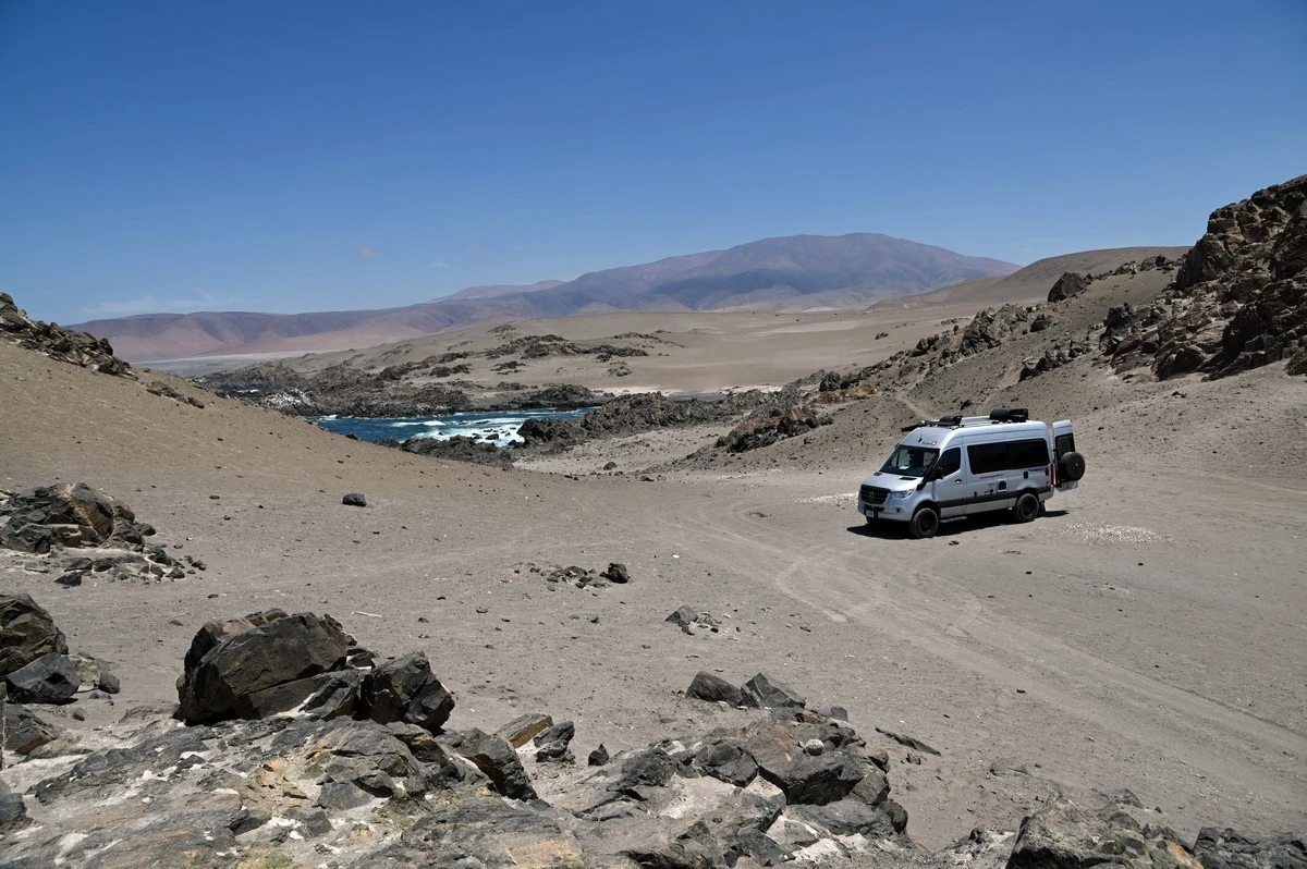 Wir standen seitlich einer kleinen, abgelegenen Piste, welche zu einer Meeres Bucht runterführte. Hatten eine gute Sicht auf das Meer und die Brandung und gedachten dort zu übernachten.